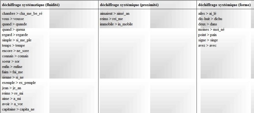 L'analyse du test02 (les quinze phrases) m'a permis de rendre compte que la notion de déchiffrage est plus complexe qu'il n'y paraît, et qu'il y aurait deux types de déchiffrages :