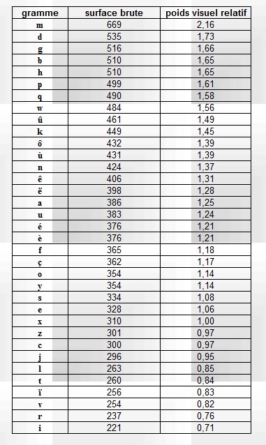 Classement des grammes selon leur poids visuel